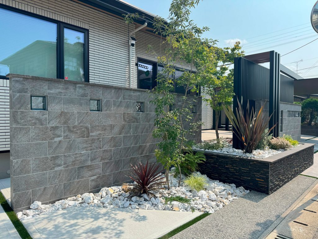 植栽まわりに添えて引き立たせたり、敷き詰めて足元に立体感を与えたり、様々な景観の変化を魅せてくれます。夜は照明の明かりで、石の表情をより引き立たせナイトシーンを演出できます。
